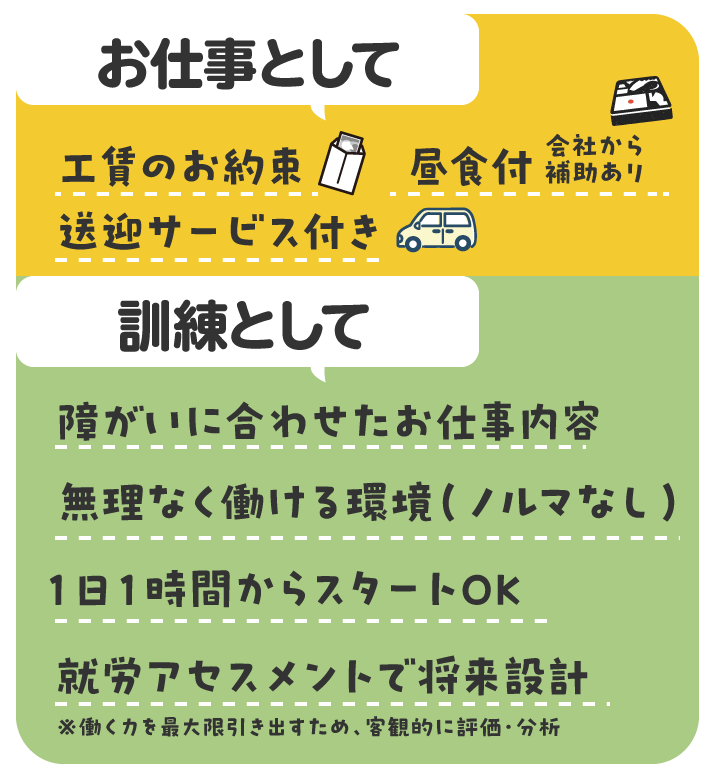 「障がい者総合支援法」に基づき、就労をサポートする場です。