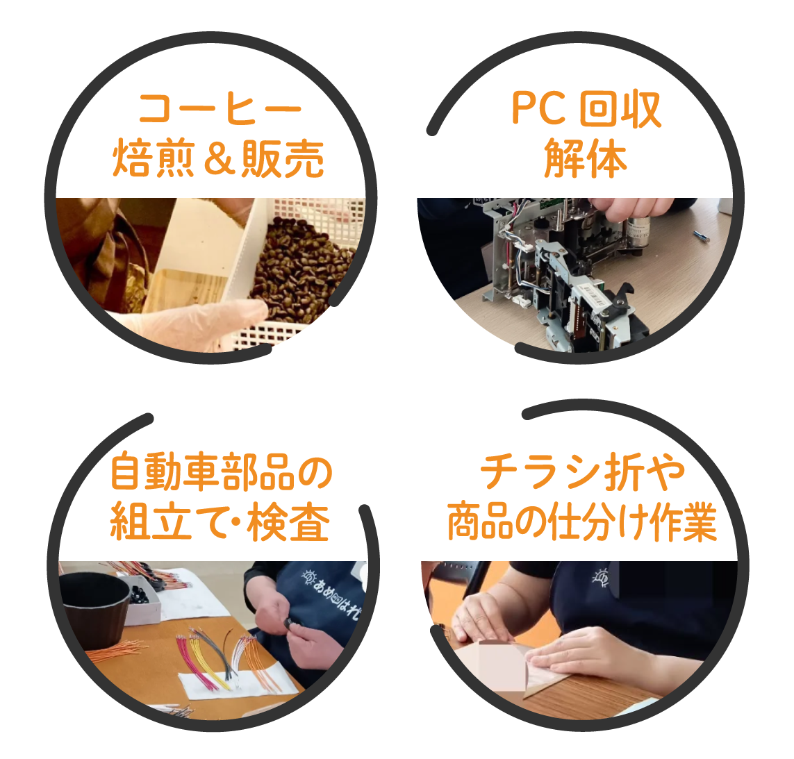 ※工賃についてはコーヒー販売などの売上から利用者さんに工賃として支払われます。お気軽にお問い合わせ下さい